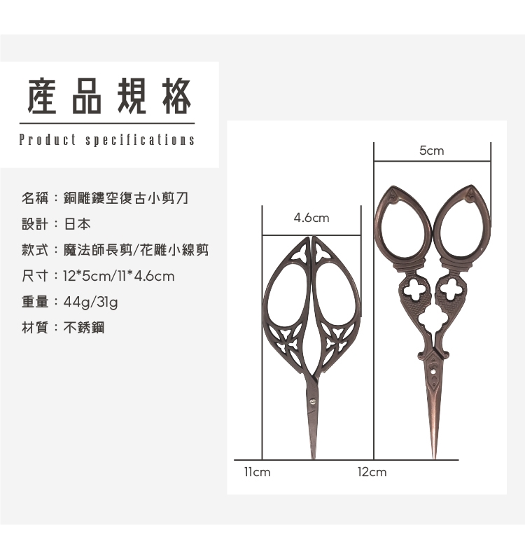 由日本設計的可愛復古小剪刀,不鏽鋼材質容易保養