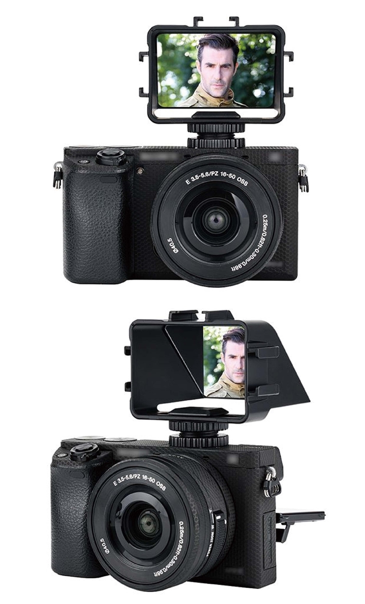 ●採用潛望鏡成像原理,只需安裝於相機熱靴位置,再將相機屏幕翻折翻轉至水平位置,相機螢幕畫面即可反射至自拍鏡裡。