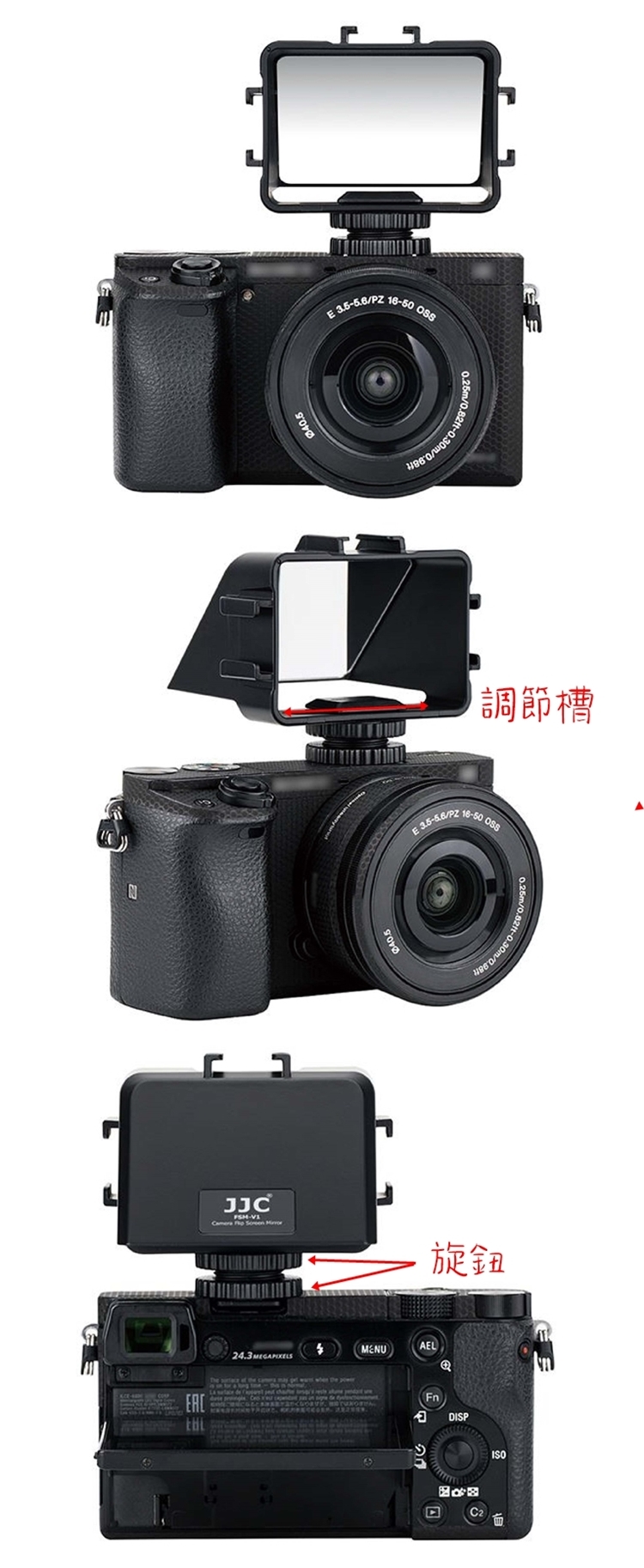 ●【品名】JJC類單微單眼相機螢幕用自拍鏡反射鏡FSM-V1(替代上翻側翻自拍螢幕,適vlog直播youtuber)後視鏡適Canon佳能Nikon尼康Fujifilm富士...各品牌標準熱靴,亦適Sony索尼MUTI智慧熱靴