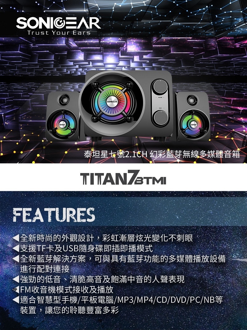 SONICGEAR|TITAN 7 【SONICGEAR】TITAN 7 幻彩無線藍牙2.1多媒體音箱