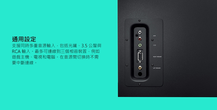 透過 3.5 公釐和 RCA 輸入埠連線到多達三個相容的裝置。