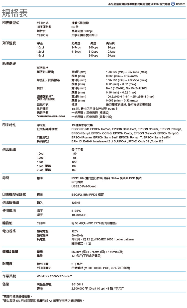 EPSON 愛普生|LQ-310 24針點矩陣印表機