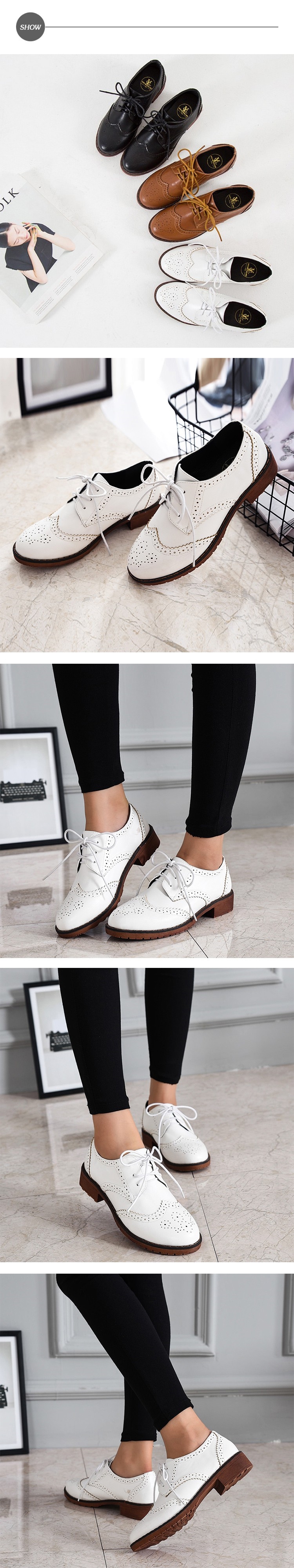 【Hedy】百搭英倫風布洛克雕花個性粗跟牛津鞋 米