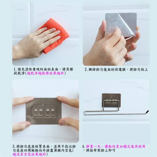 4.靜置一天,讓黏性更加穩定後再使用,將抹布架掛上即可。