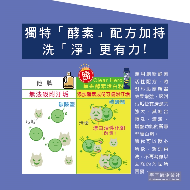 品名:Clear Hero氧系酵素漂白粉530g罐裝