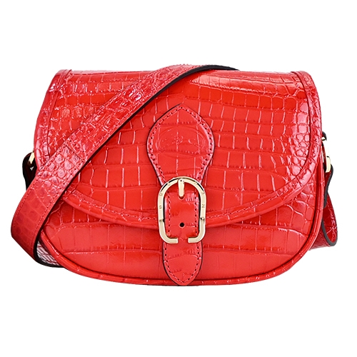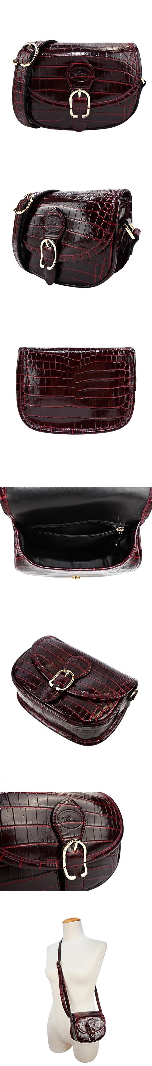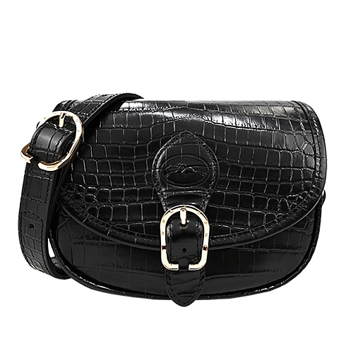 LONGCHAMP 1980系列鱷魚紋牛皮亮面翻蓋斜背馬鞍包(迷你/2色選)