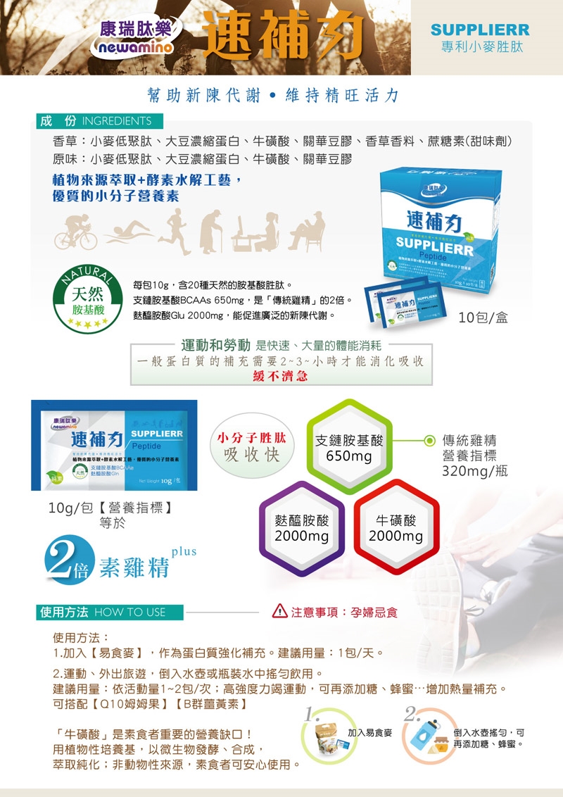 建議用量:每天2包,可依個人體能需求增減