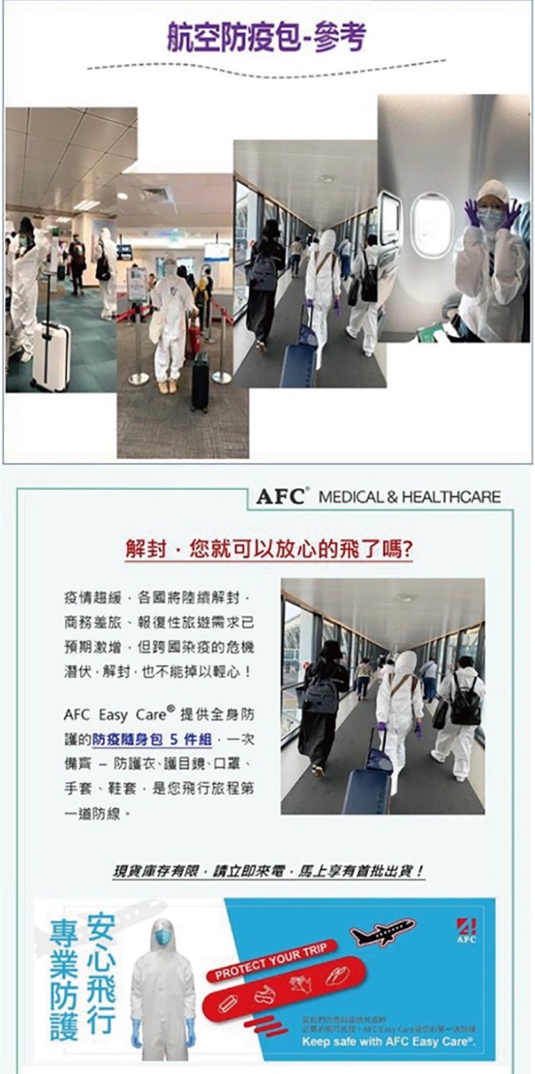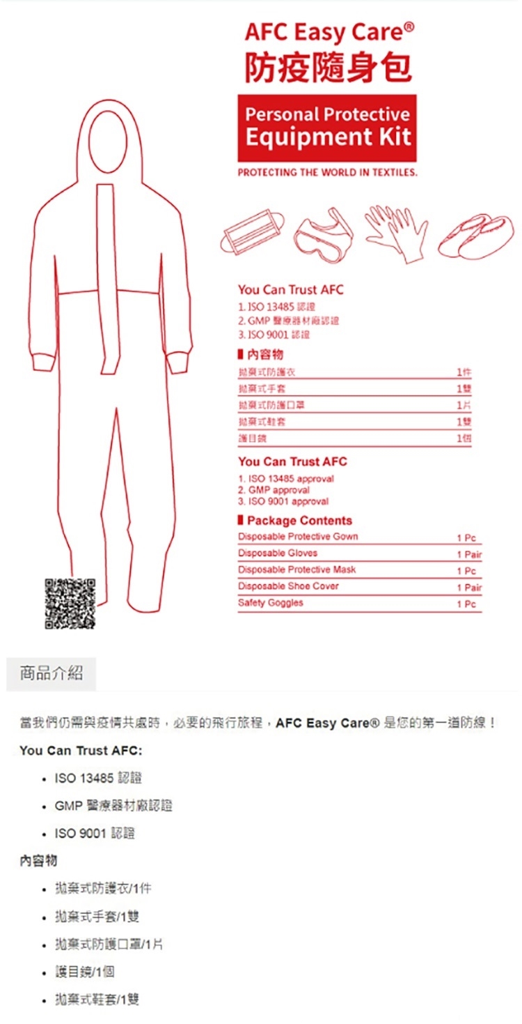 AFC Easy Care® 拋棄式防護衣通過AAMI及EN國際認證,符合感染控制的防護服規範,