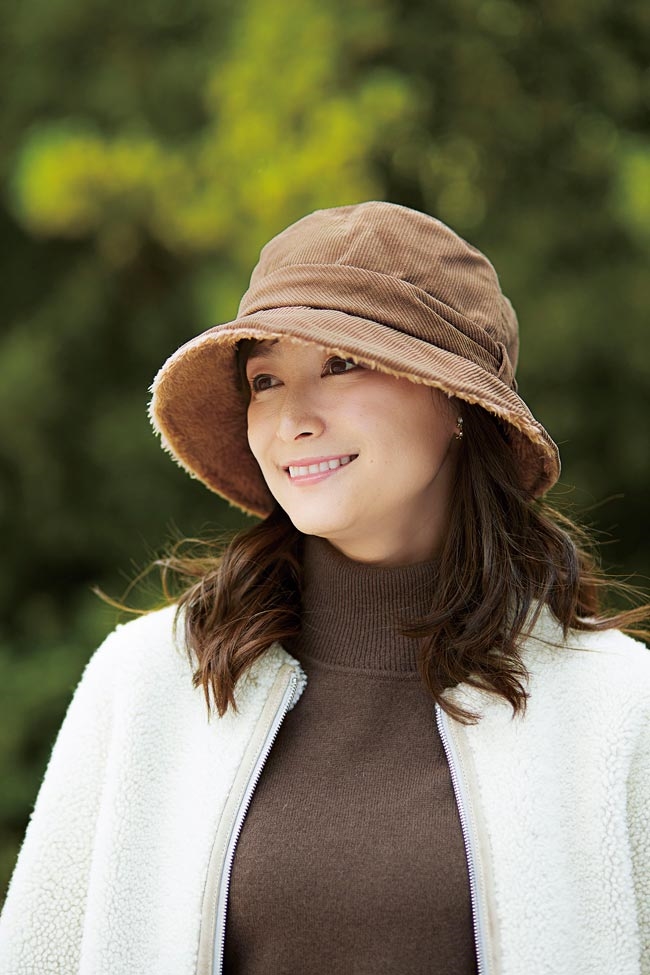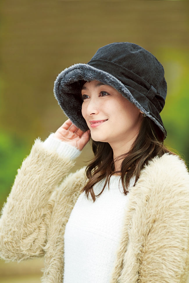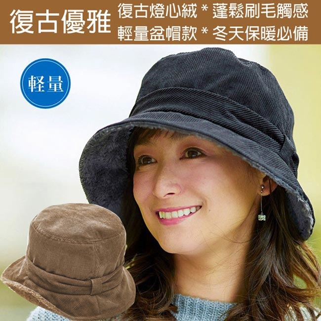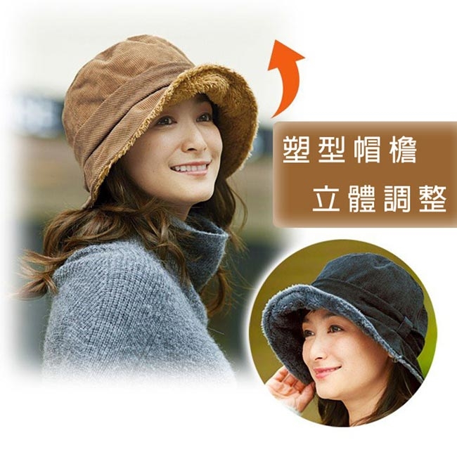 1.優雅漁夫帽款,搭配復古燈心絨條紋及內側蓬鬆感刷毛,冬天保暖必備單品。
