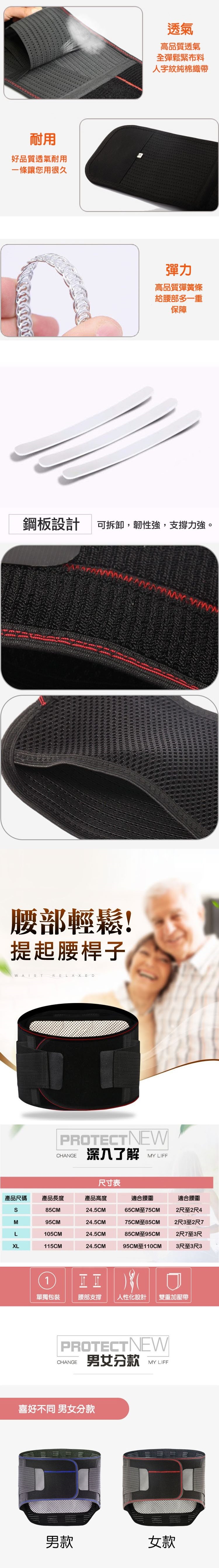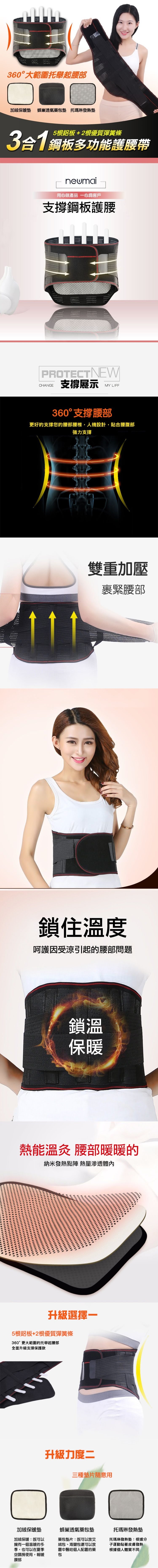 護腰高度加高,範圍廣,包覆性強,低位可達臀部,平均釋放腰部壓力。