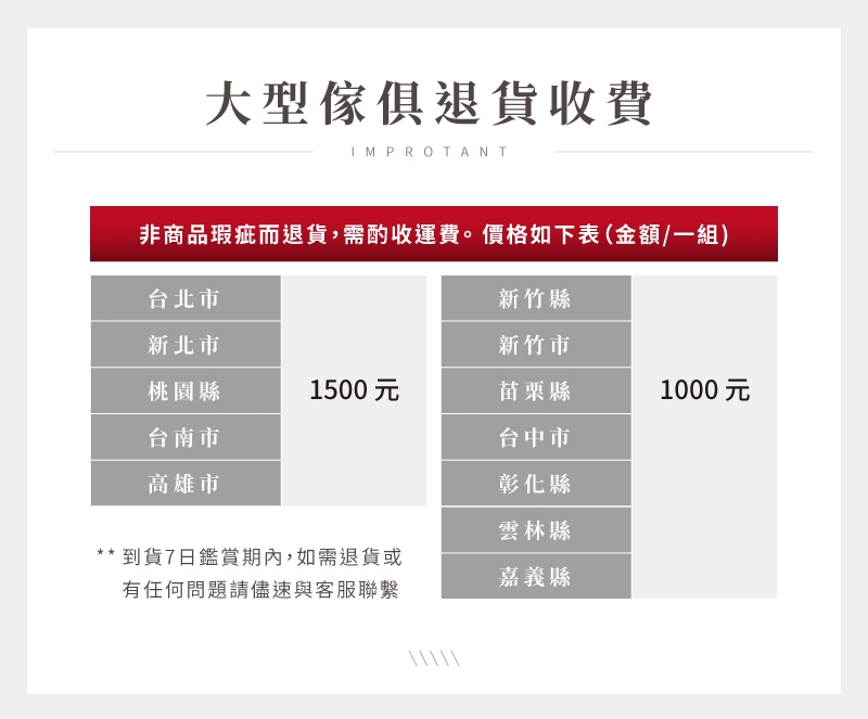 因應一例一休,貨運假日、國定假日、皆不配送。