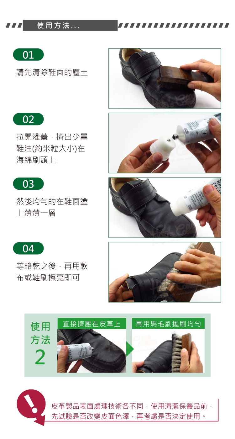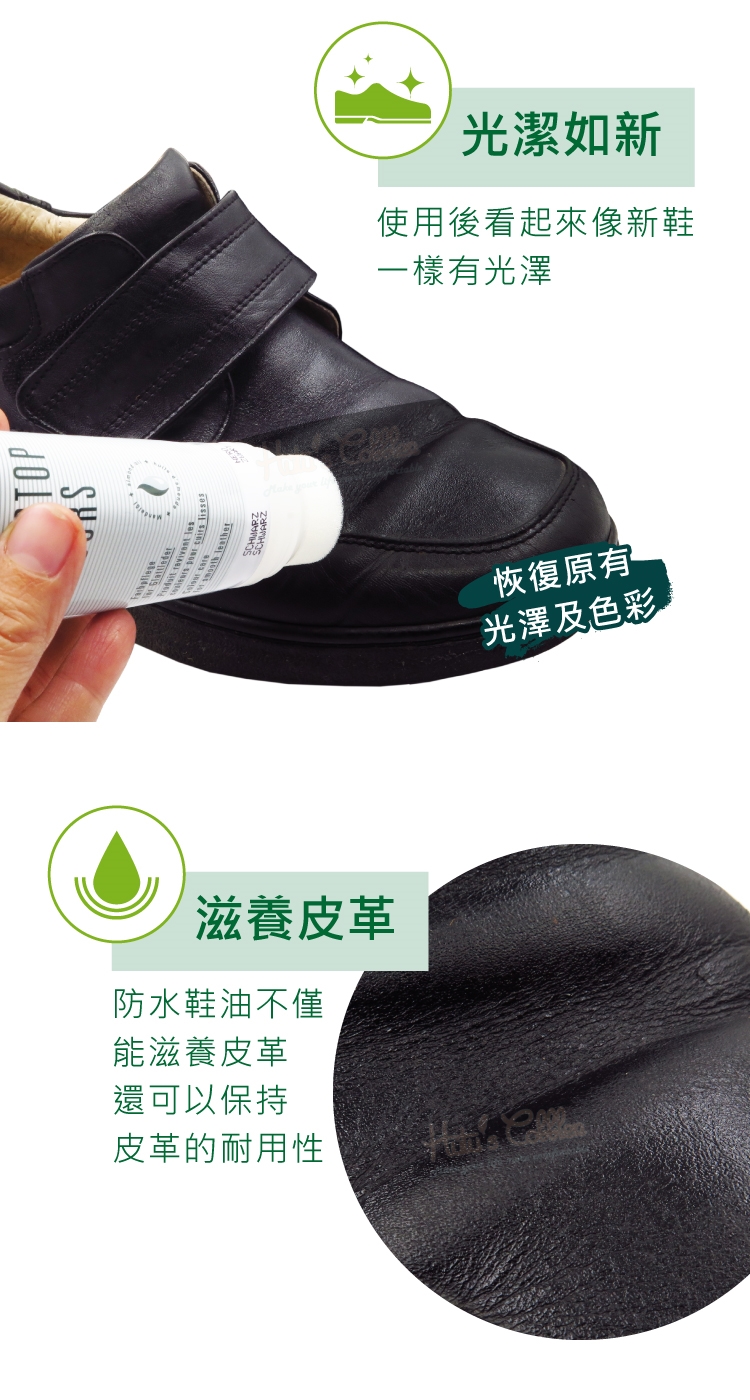 滋養皮革:防水鞋油不僅能滋養皮革,還可以保持皮革的耐用性