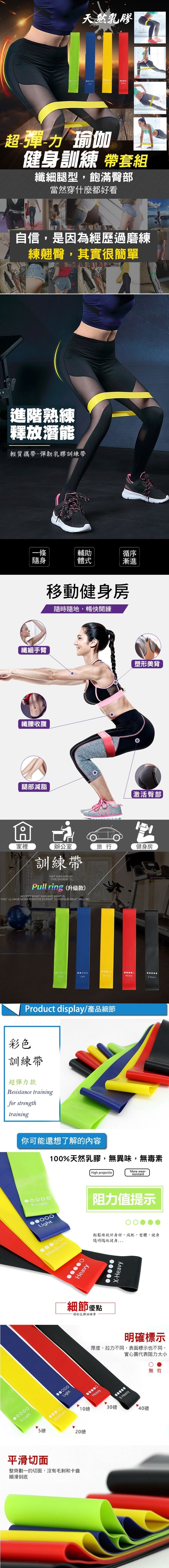 瑜伽健身彈力訓練帶套組,一組有各種不同阻力的超彈力瑜伽健身訓練帶套組,幫助您簡單在家訓練!使用天然乳膠製作,多角度肌肉阻力訓練,鍛鍊核心肌肉群、修飾線條,打造健康健身,讓運動更有效~