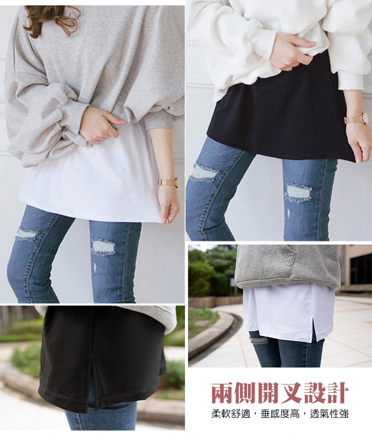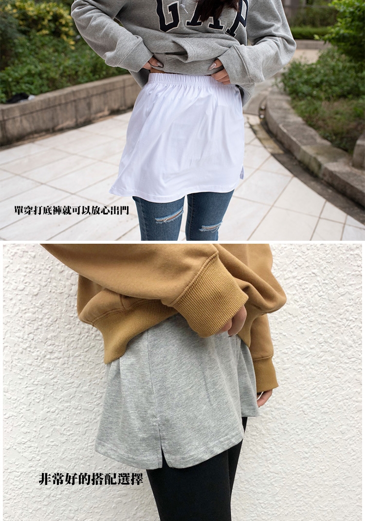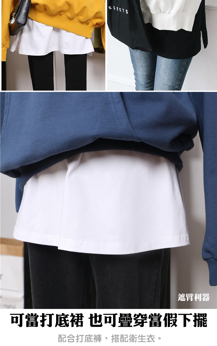穿在褲子外輕鬆打造假兩件可以遮屁股也可以單穿打底褲當裙子!質感好有彈性,特殊剪裁,讓你忍不住多帶幾件回家!