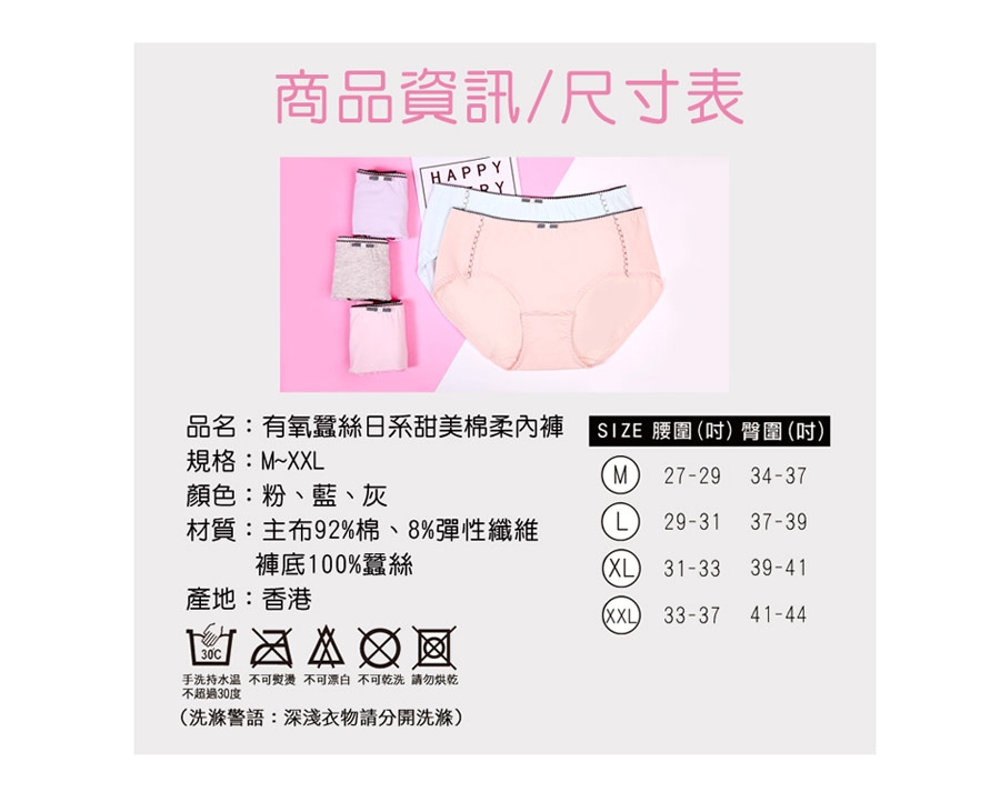 當然!少不了抗菌、親膚、排汗、好清洗的專利蠶絲褲底