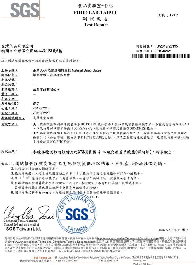 | 內容物成份: | 椰棗乾-180g*6包 |