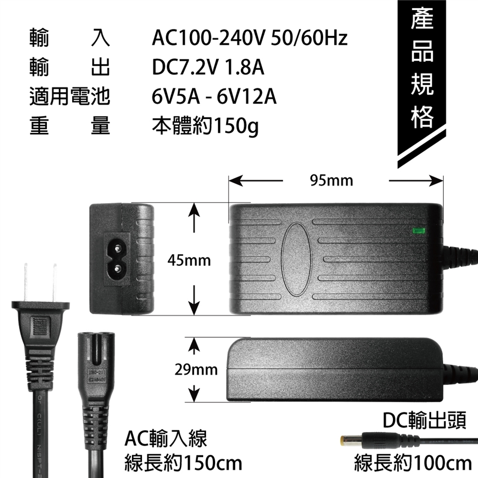 ◆本商品支援6V5Ah~12Ah鉛酸電池。