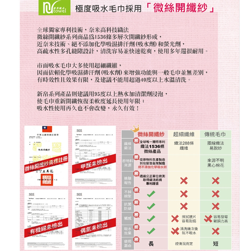 名稱:【新帛】外銷款 台灣製 1536條微絲開纖 強吸水毛巾