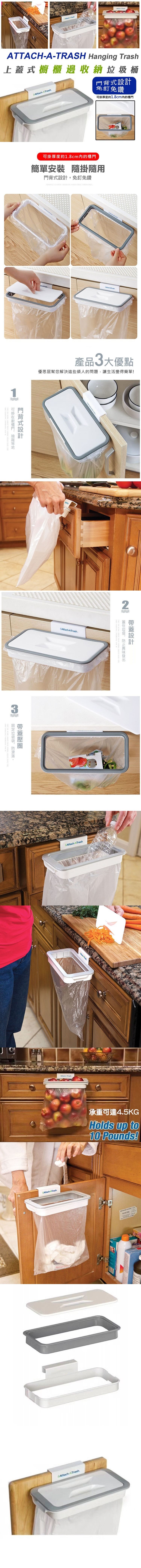 隨處做出一個行動垃圾桶!超實用桌邊收納垃圾桶,環狀卡扣押住塑膠袋,掛勾設計可直接掛於桌邊、櫥櫃門等地方,快速做出一個迷你垃圾桶!材質堅固耐用,高載重牢固緊實,廚房有它,料理時廚餘垃圾不再是問題,辦公室裡不用跑大老遠丟垃圾,本體輕巧,好收不占空間!