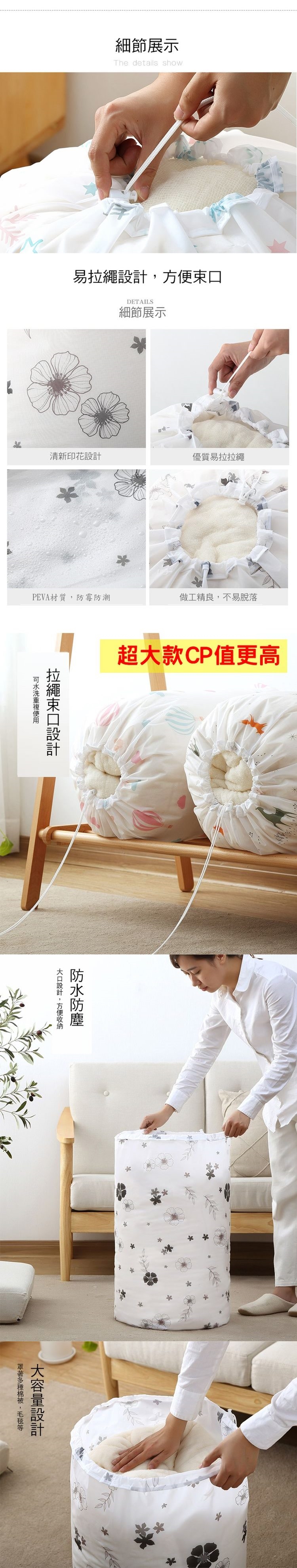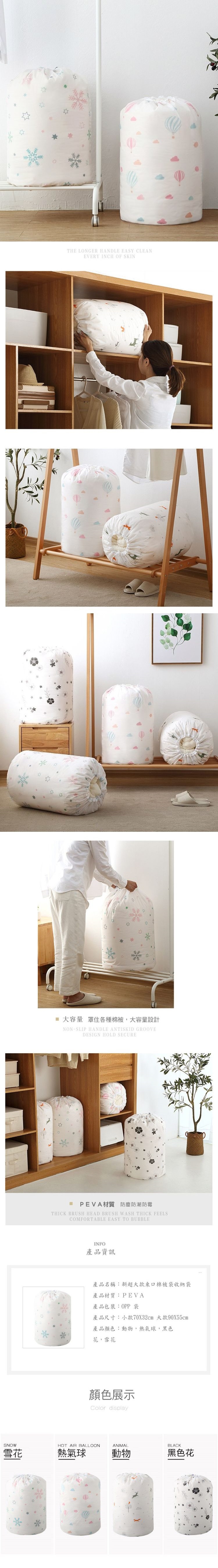 新超大款束口棉被袋收納袋,新升級為 超大尺寸  90x55 cm,特別回饋 加大不加價 , 材質也更為提升 耐磨,並 採用PEVA材質,耐磨耐用,大容量收納,衣物、棉被都能整齊存放!若有髒汙也可直接水洗、重複使用。抽繩束口設計,輕輕一拉便可收緊,開合方便。半透明設計,內置物品一目了然!不用時可摺疊收納,不占空間