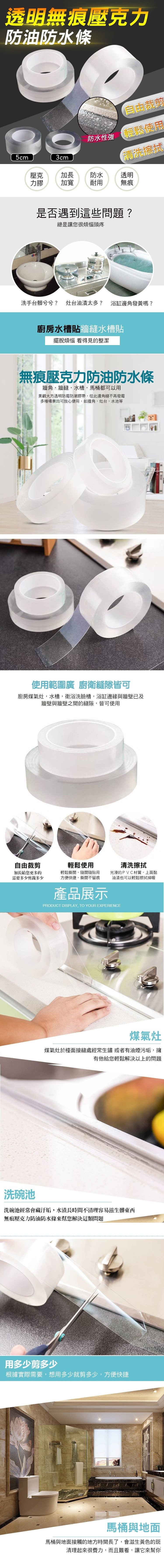 洗手洗碗時水花常濺濕檯面,反覆擦拭也擦不太乾淨很麻煩嗎?透明無痕亞克力防油防水條 防油防水 不同於舊款的 吸水靜電貼會將油購髒污都吸入(只是表面上看不到,實際是很髒的) ,優良材質,細膩觸感,超吸水,保持檯面乾淨清爽,移除無膠痕,可重複多次使用,自由剪裁,使用方便,透明無痕,融入居家風格不突兀,多功能隨你貼~