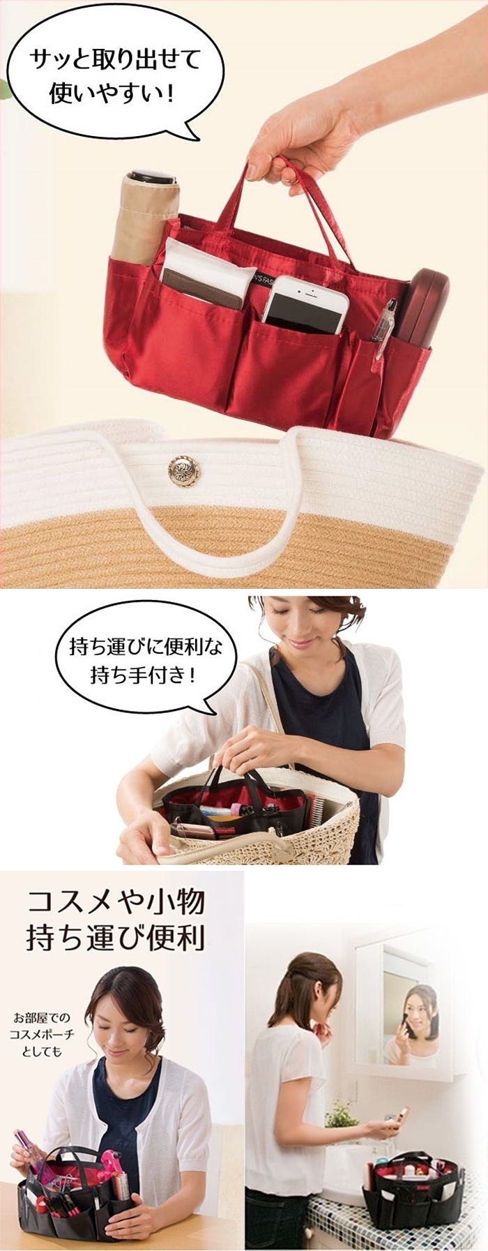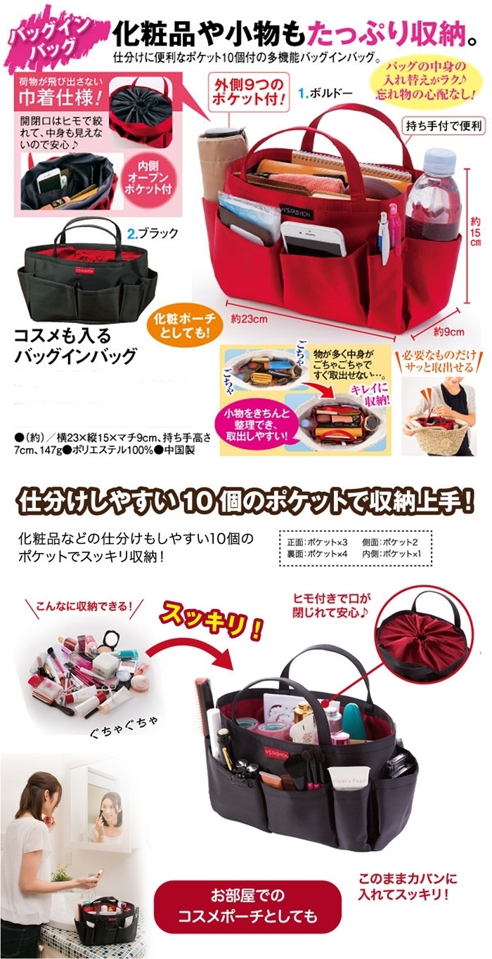 ●【日本品名】コスメも入る バッグインバッグ