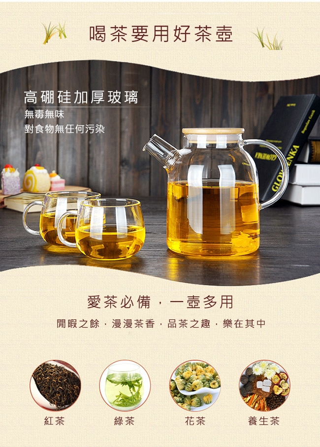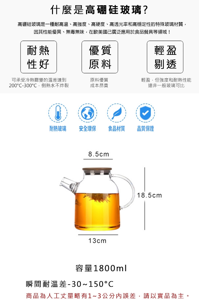 商品材質:壺身:高硼硅耐熱玻璃 上蓋:竹、上蓋內層&濾網:不鏽鋼304