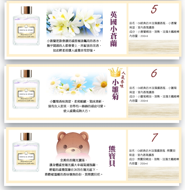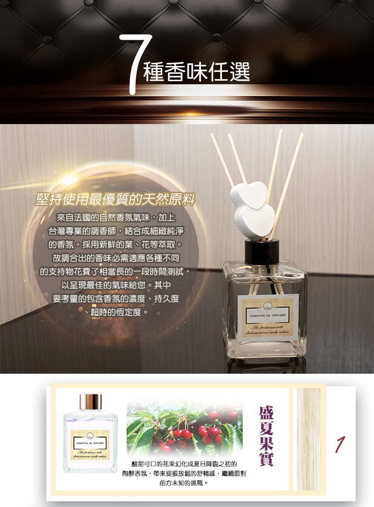 採用法國高級精油,搭配珪藻土塊+薰香棒的綜合效應,自然散出香氣,能改變室內的氣息,提升你的生活品質!共8款香味任君挑選,放客廳、廚房、浴室、房間都很適合!