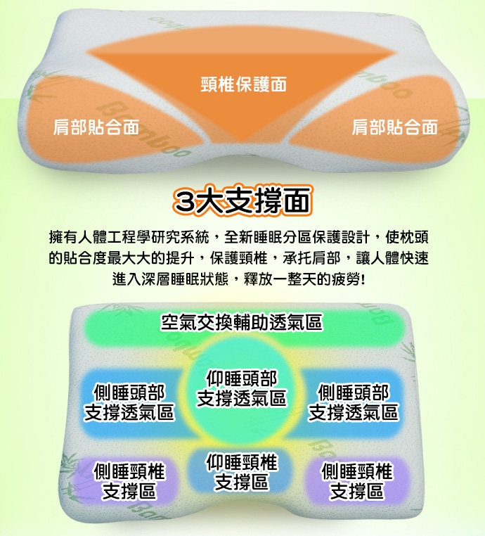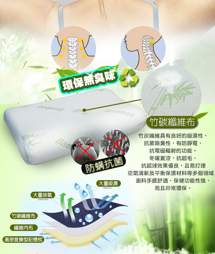 一個好的枕頭,不僅讓你睡得更香甜,也保護你的頸椎遠離不良姿勢!採用環保的竹炭纖維表布,