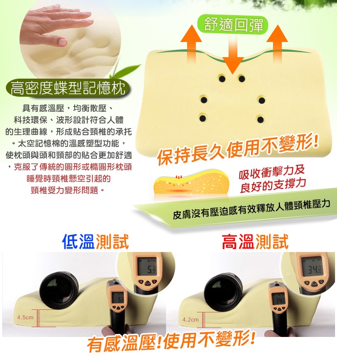 吸濕透氣,冬暖夏涼不易起毛球!高密度蝶型記憶枕,良好的回彈力,符合人體曲線,舒適貼合頸椎,