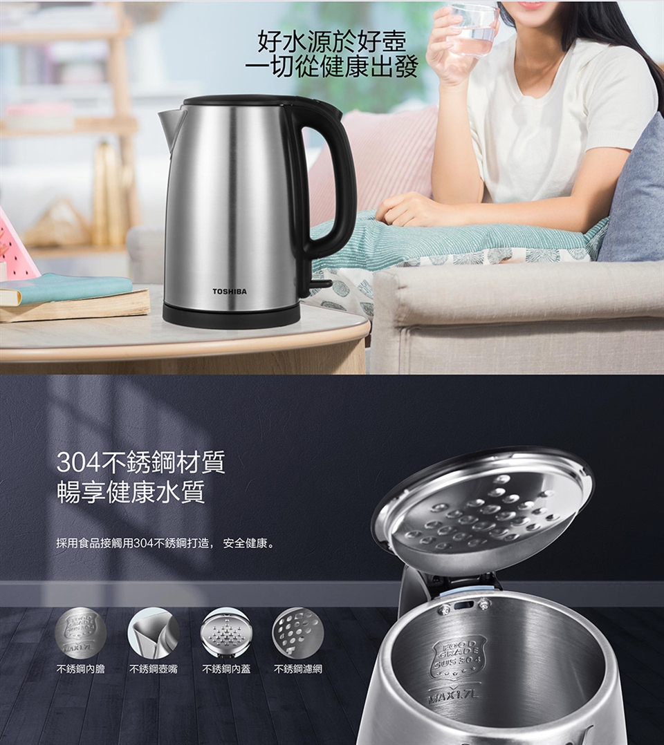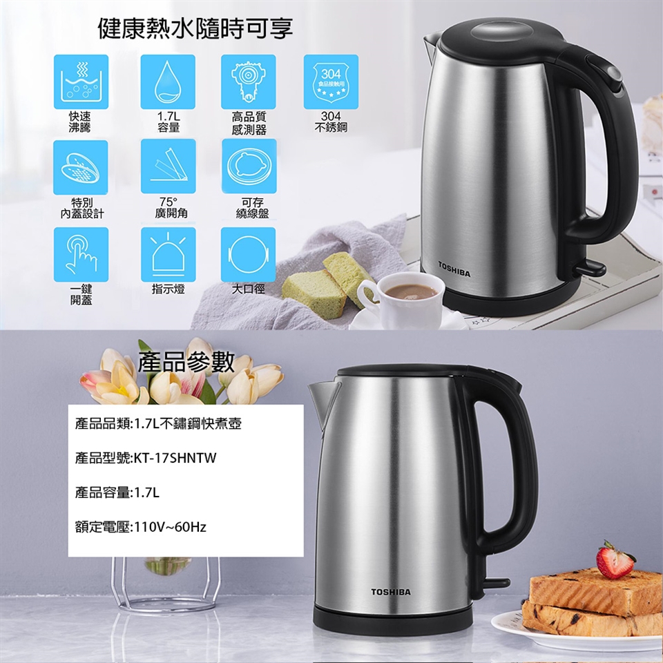 TOSHIBA 1.7L不鏽鋼快煮壺 KT-17SHNTW
