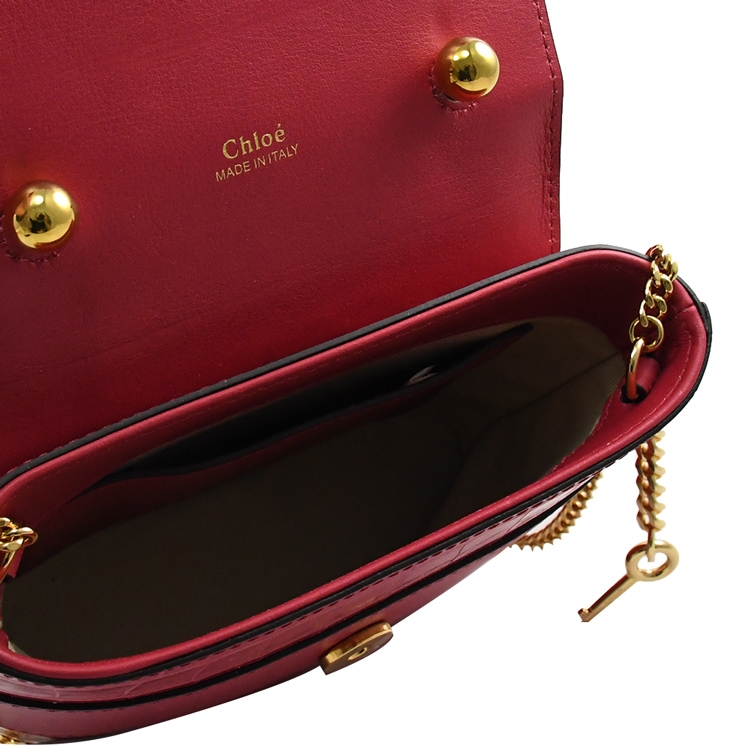 CHLOE專櫃熱賣款迷你兩用包,採用鱷魚紋路小牛皮材質,翻蓋扣式開口,內有1內袋,內可放手機(裸機)、鑰匙等隨身小物,可手提也可斜側背,大小適中,外出出遊皆合適,顯出低調奢華的質感,搶眼又好搭風格。
