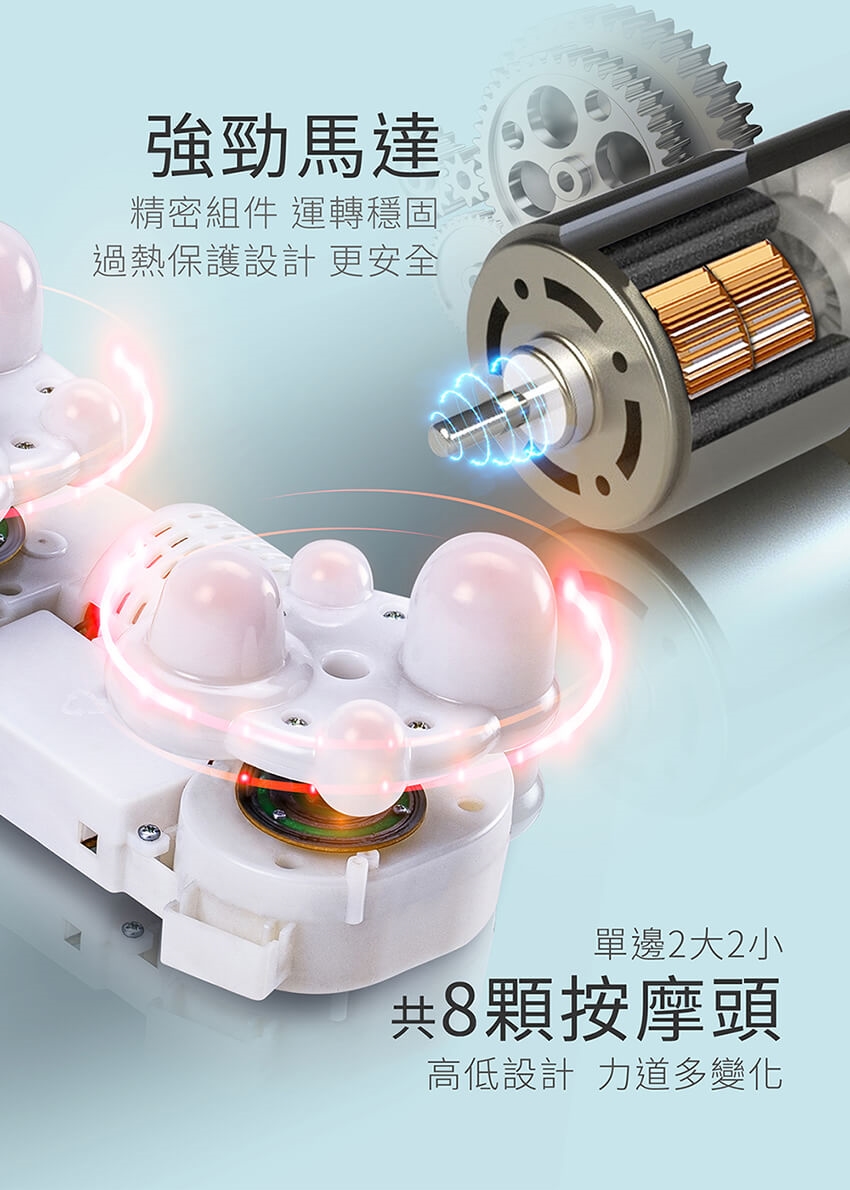 6. 按摩器有加熱功能,熱感覺遲緩者,使用時需有人員在旁協助,密切注意。