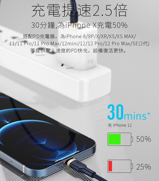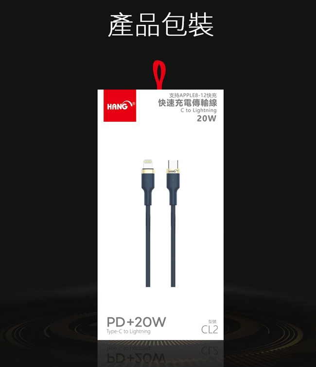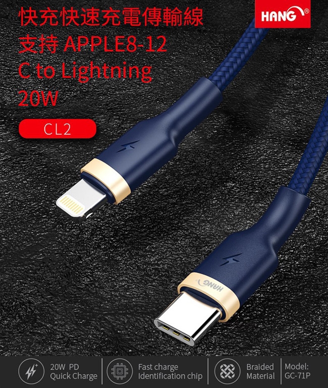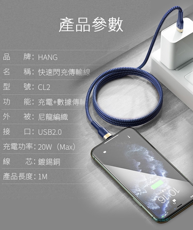 HANG 20W PD Type-C to Lightning 金屬風閃速充電傳輸線-1入