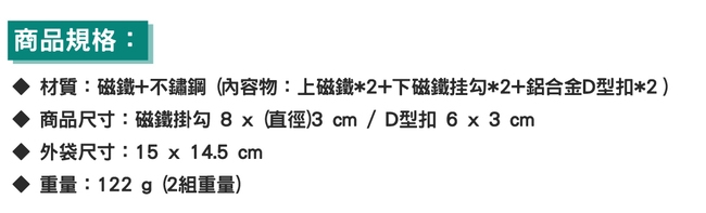 磁鐵掛勾磁性強,避免家中小朋友碰到造成危險,請吊掛在小朋友碰不到的地方。