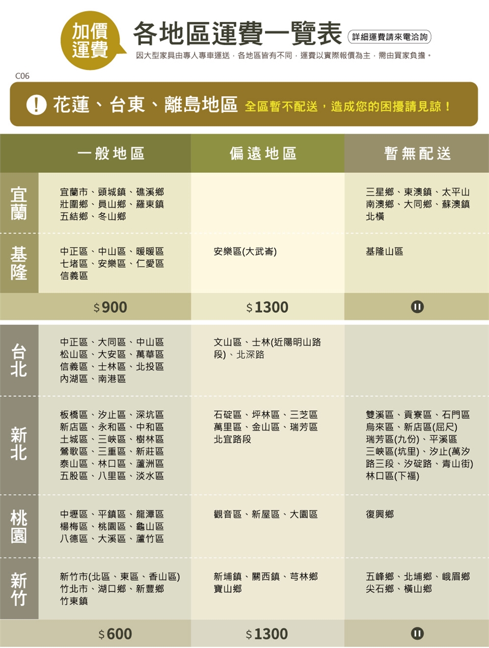 部分未載名偏遠鄉鎮區域本公司保有出貨與否權利!