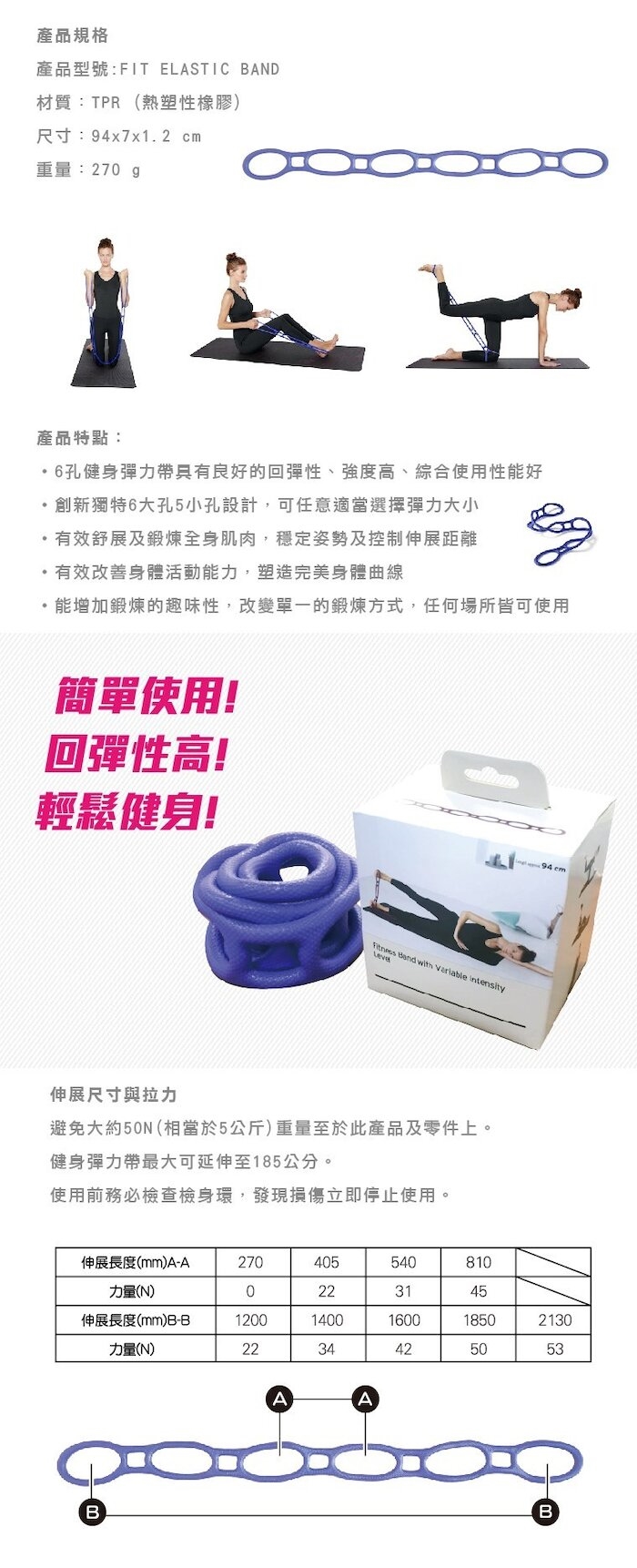◆ 多功能瑜珈普拉提6孔彈力帶