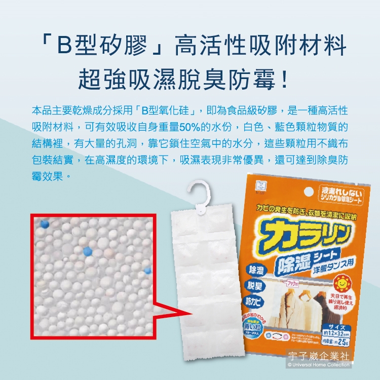 2.將除濕袋平放或懸掛於需乾燥的空間即可。
