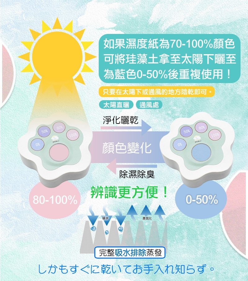 辨識方便~解決了不知道何時珪藻土會吸飽水,該曬太陽的困擾?