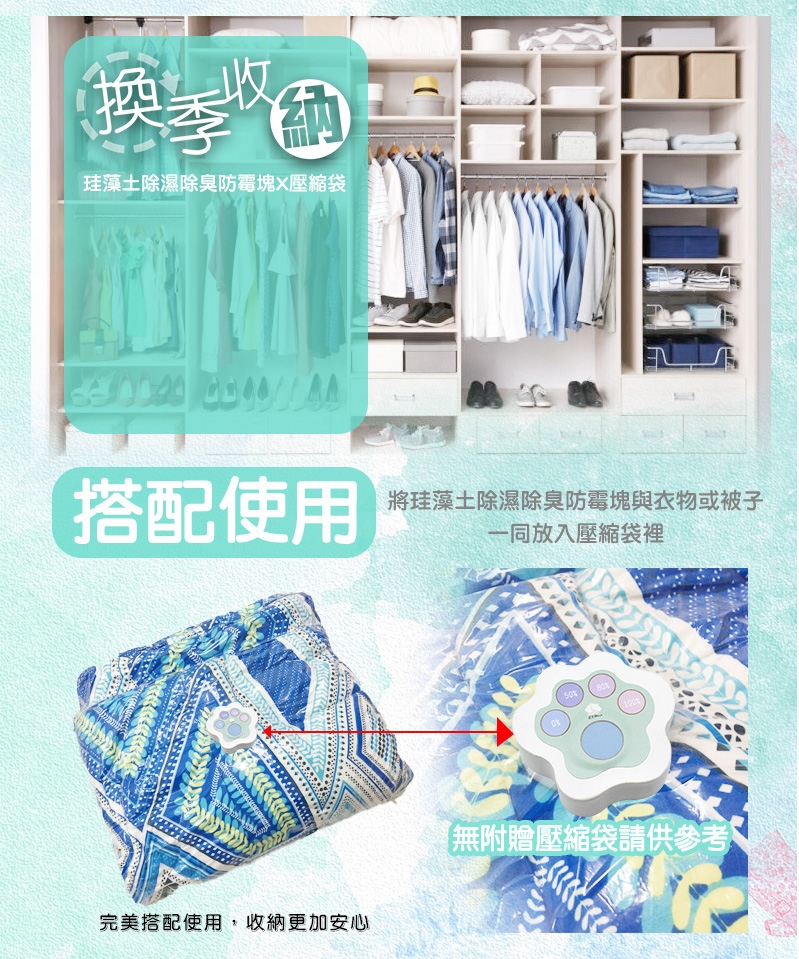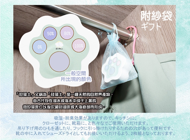 與其要買不環保的除濕袋子,占空間價格較高只能用一個月又不環保,那還不如買環保的藻土,多愛地球多一點。