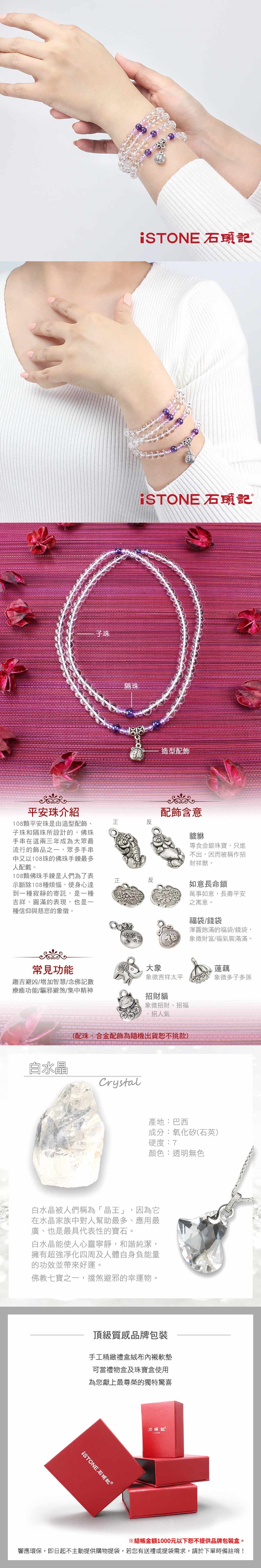 石頭記平安珠系列是嚴選水晶玉石以手工細磨精製而成,特色是豐富多樣的間隔珠設計,