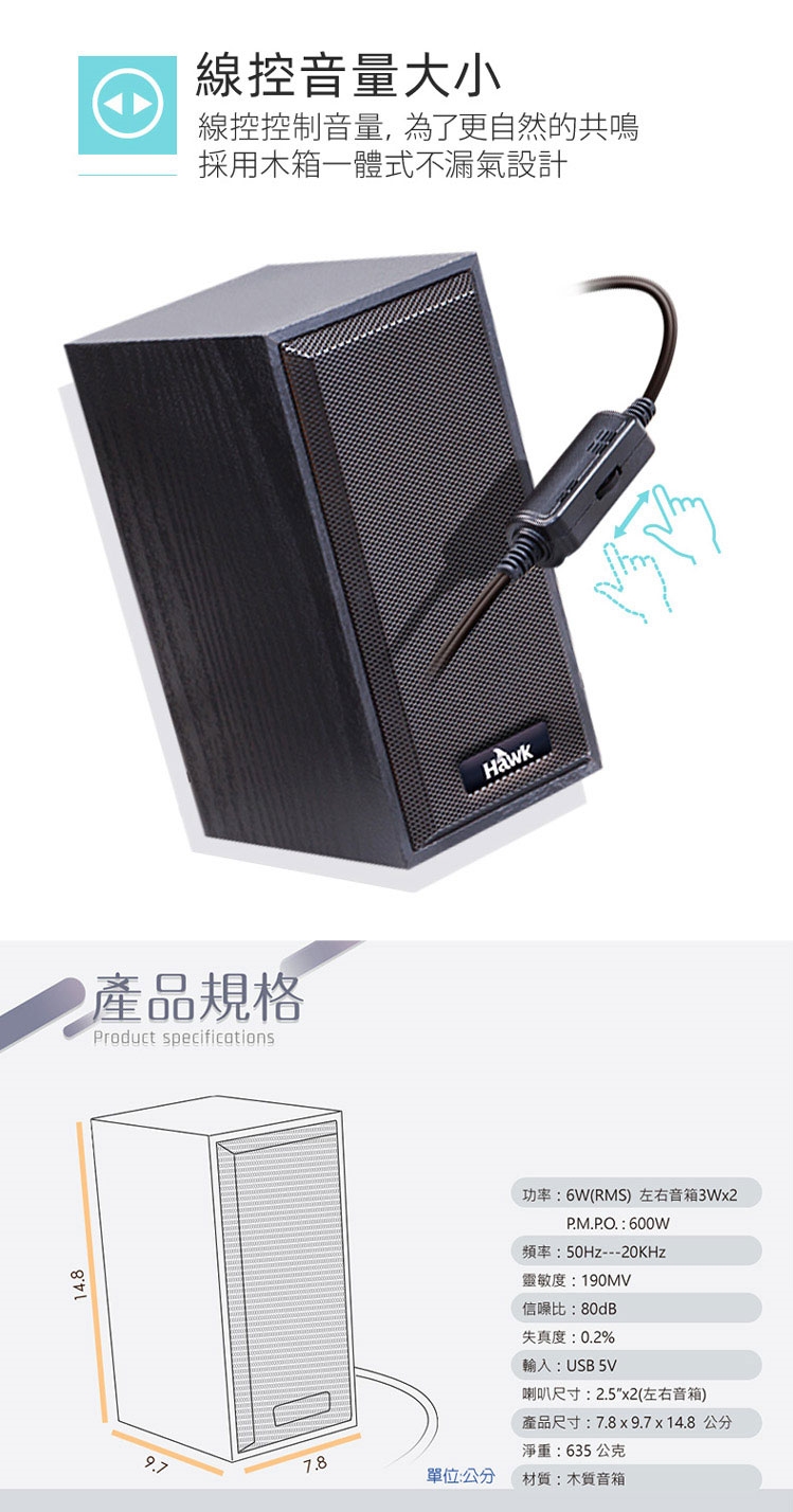 特色:整體木質設計,為令音質更完美,添加音量線控。