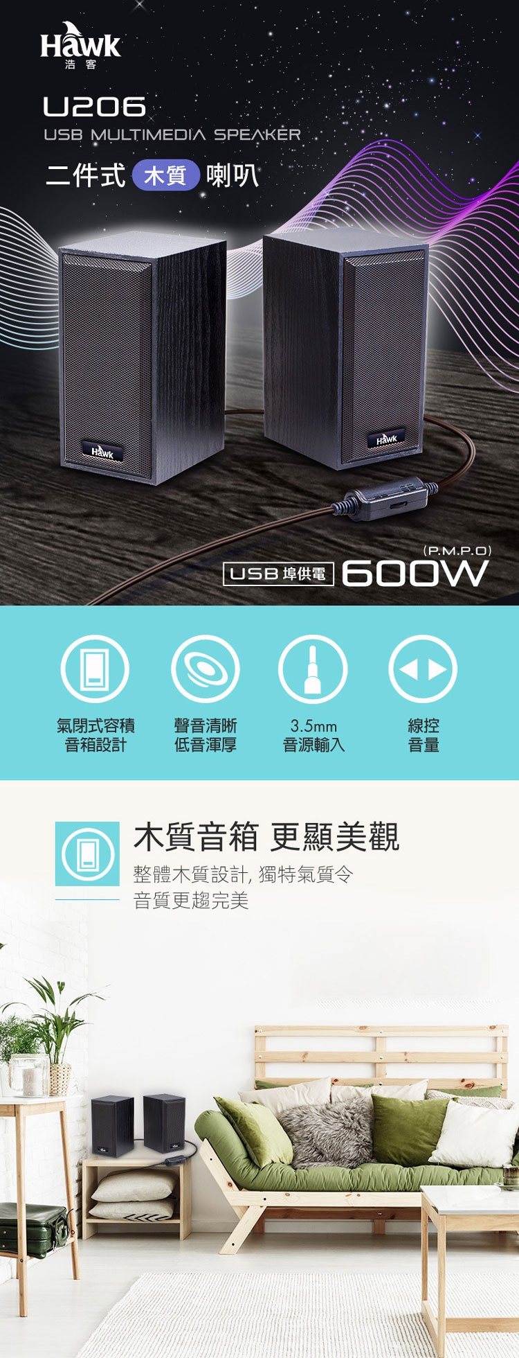 Hawk 浩客|二件式木質喇叭-黑(08-HGU206BK)