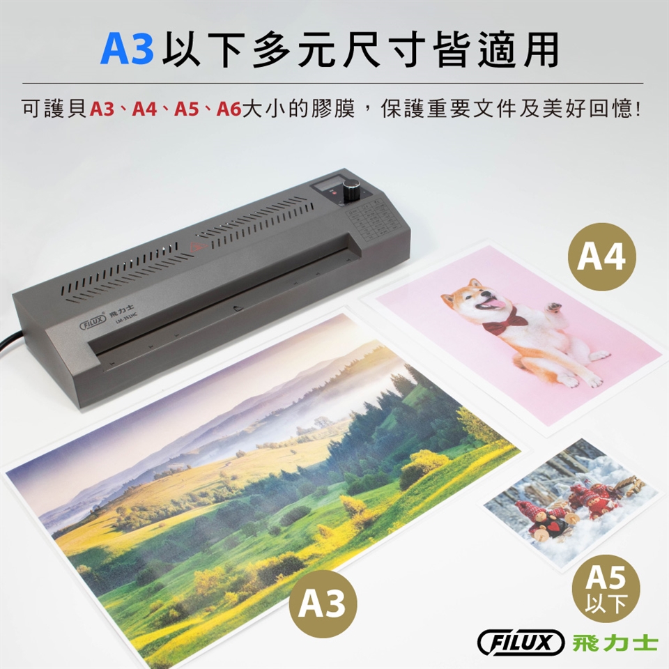 鐵製耐用A3大尺寸(A4、A5、A6通用)冷熱護貝機