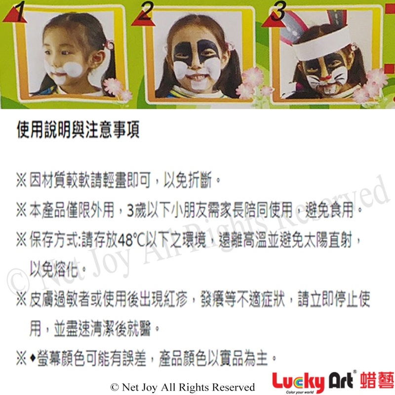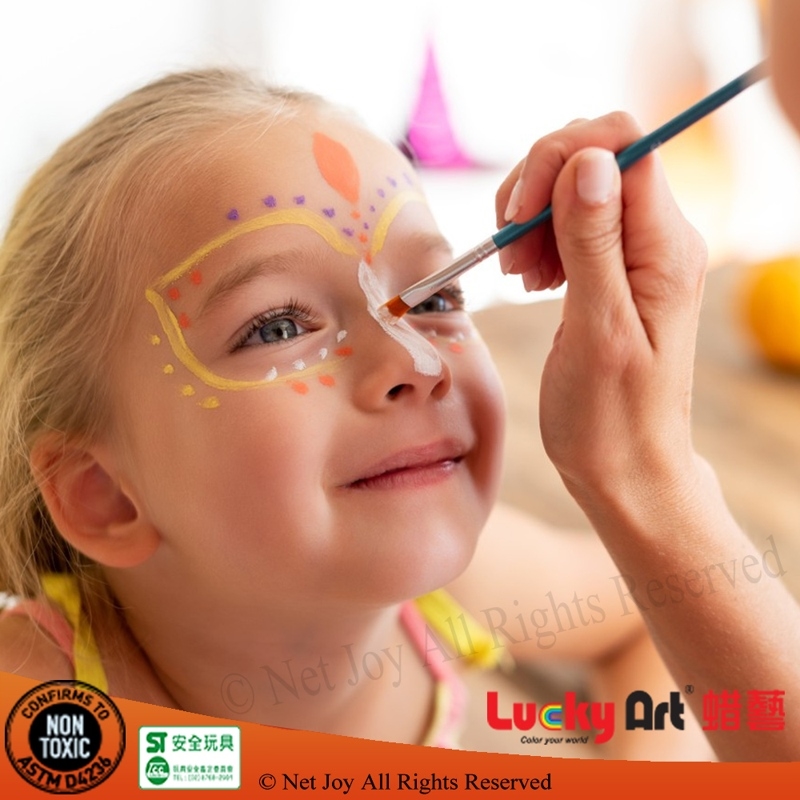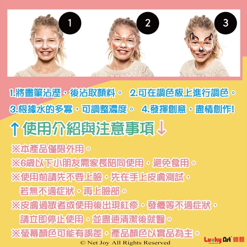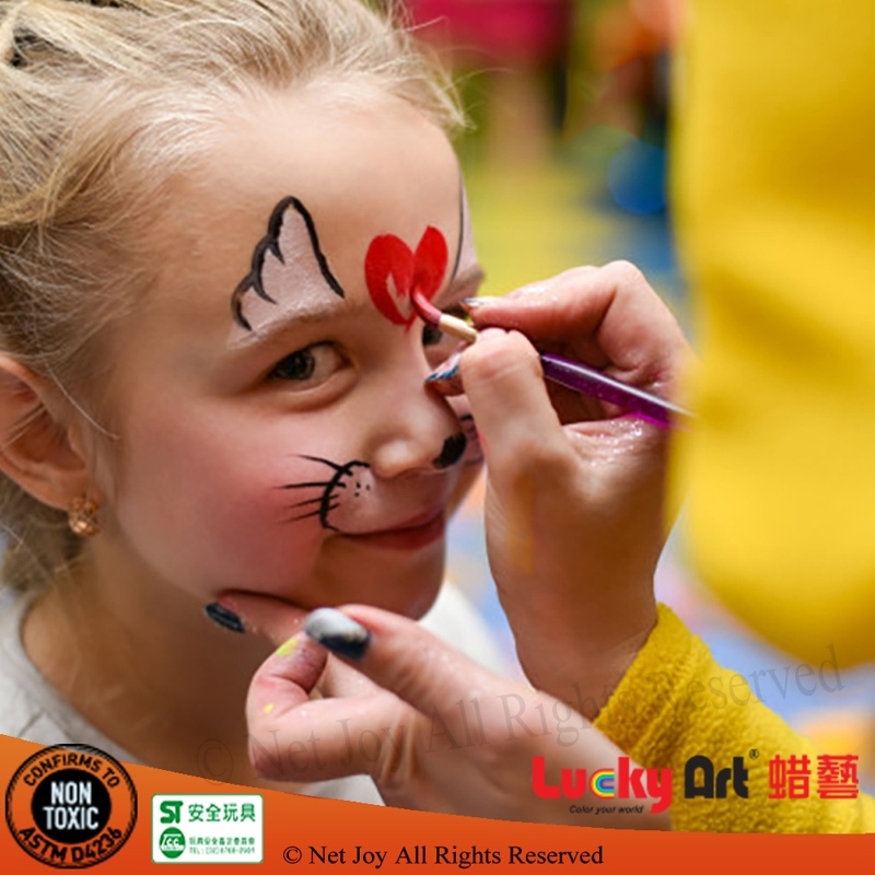 4.清潔方法:請先以清水或濕紙巾擦拭皮膚表面彩繪顏料後,再以洗面乳或香皂清除。