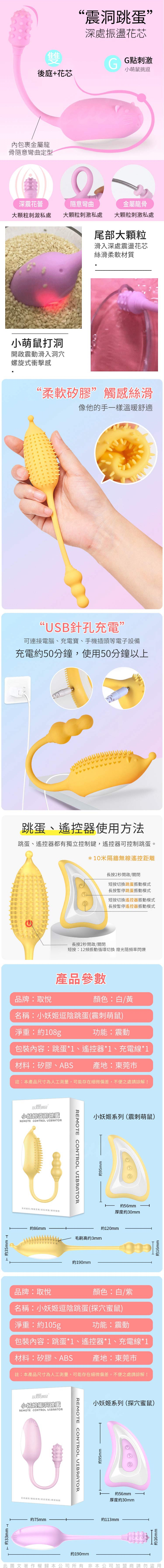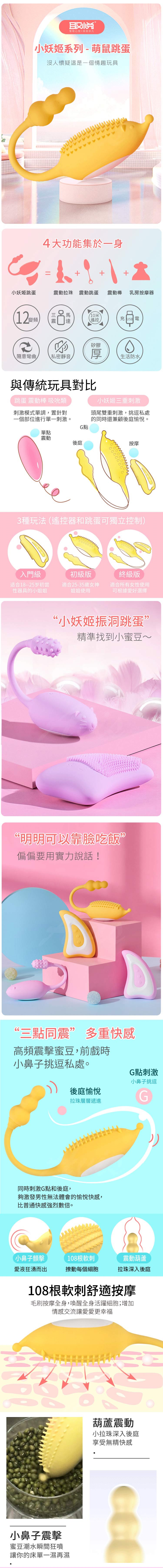 .主商品:取悅-小妖姬 12頻3點刺激 逗陰遙控跳蛋-小刺蝟 黃色