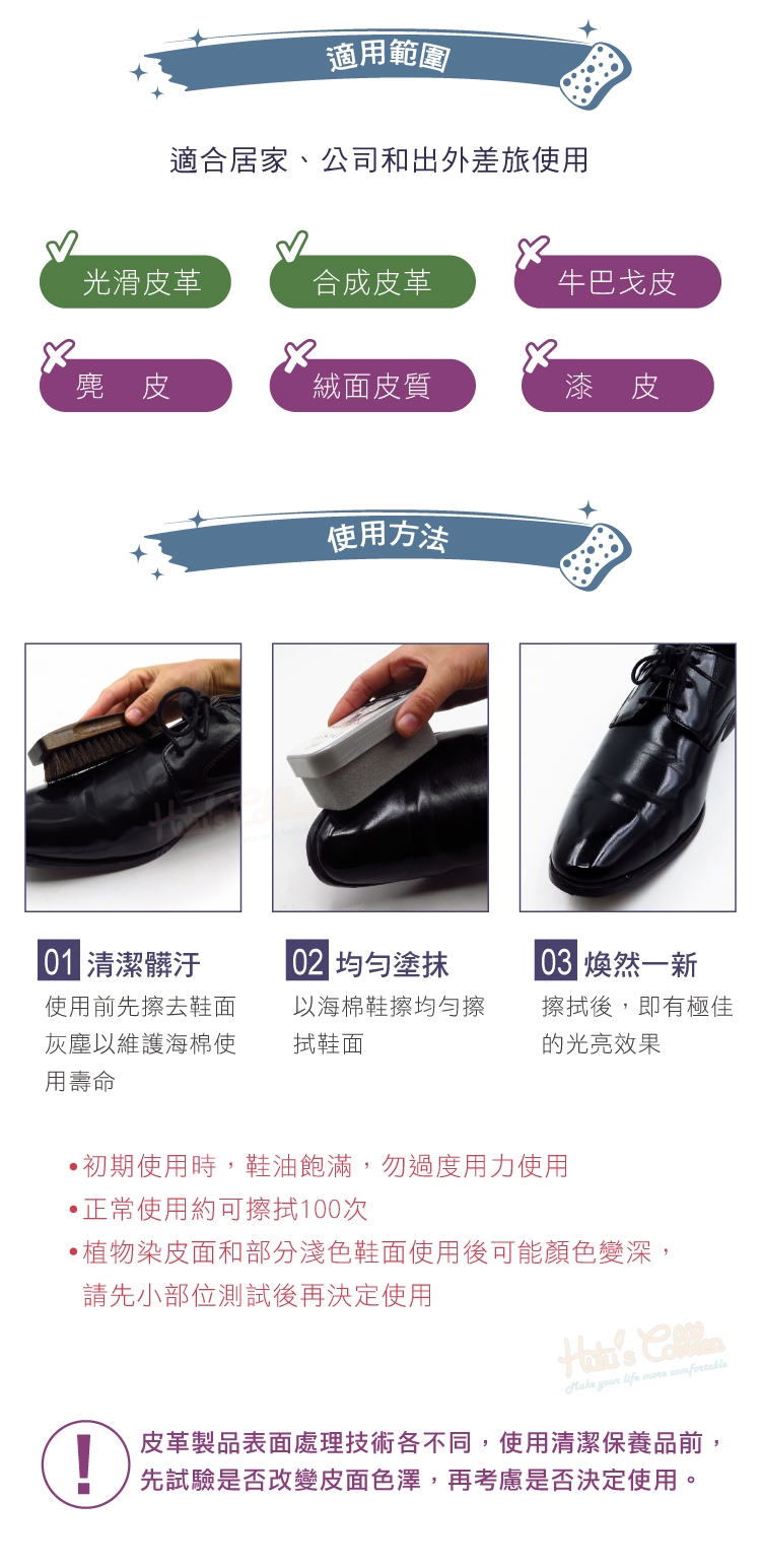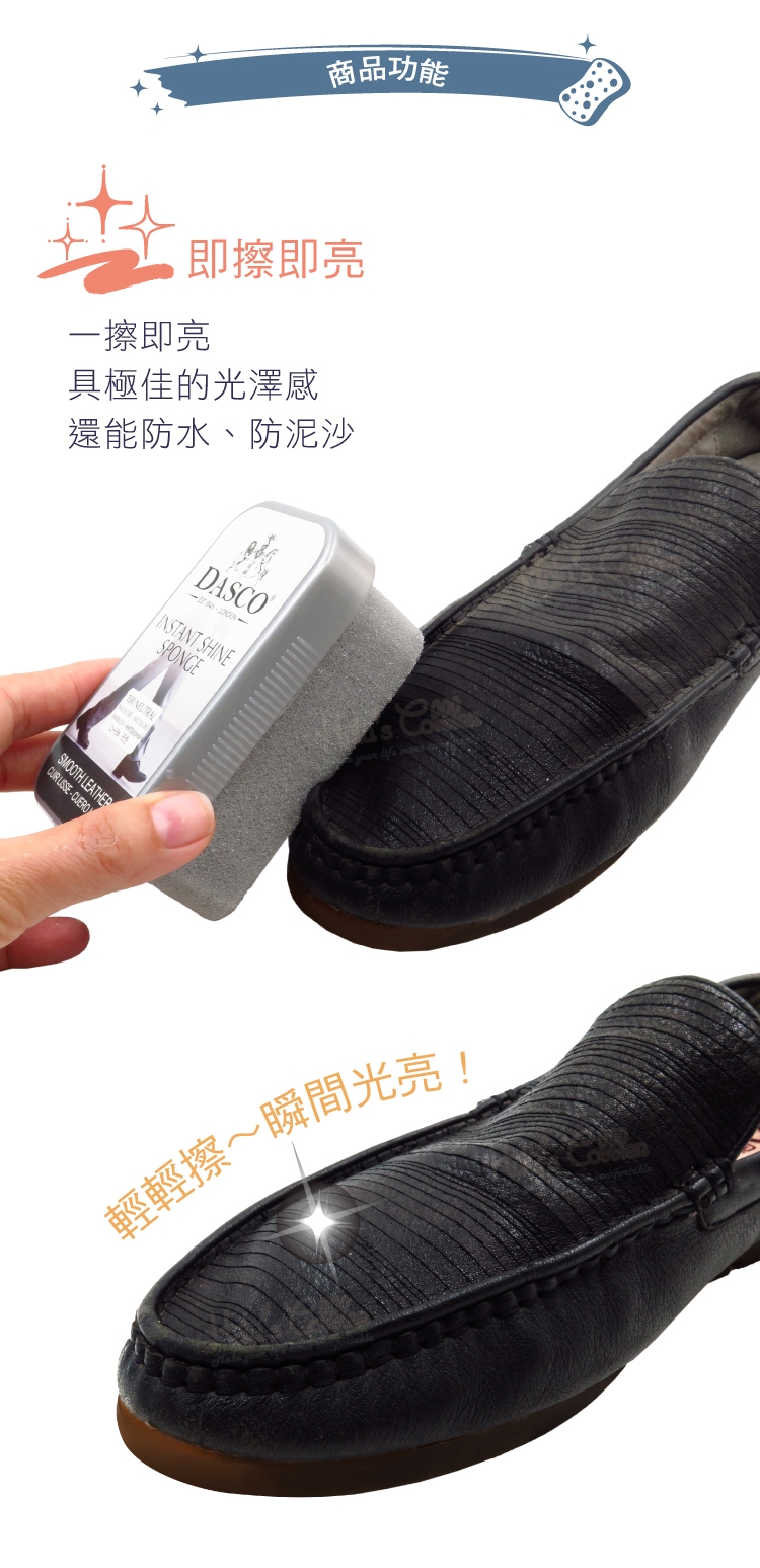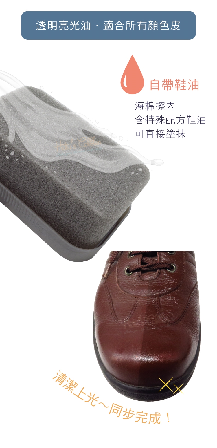 2.自帶鞋油:海棉擦內,含特殊配方鞋油,可直接塗抹