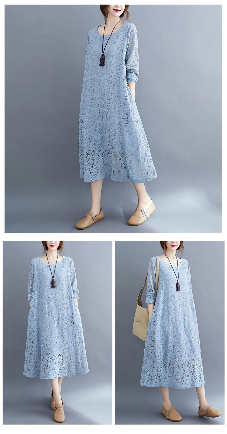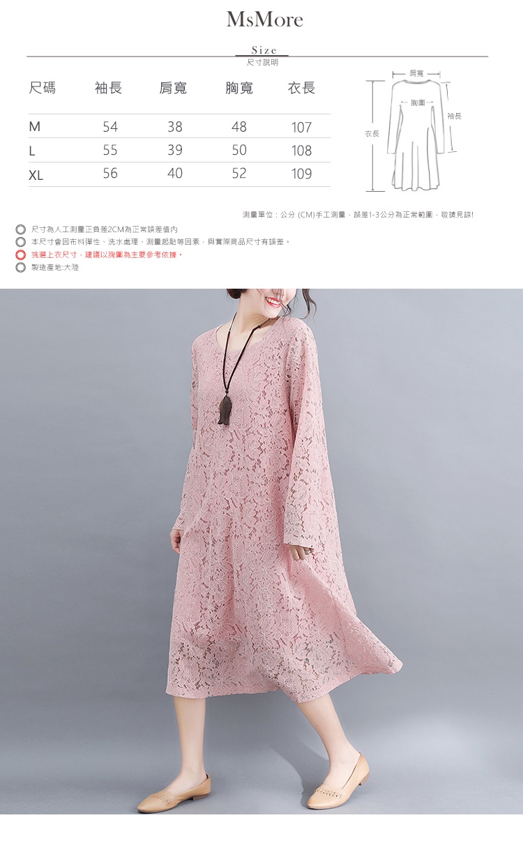 * 內含 : 法國香風蕾絲彈力寬鬆長袖洋裝#