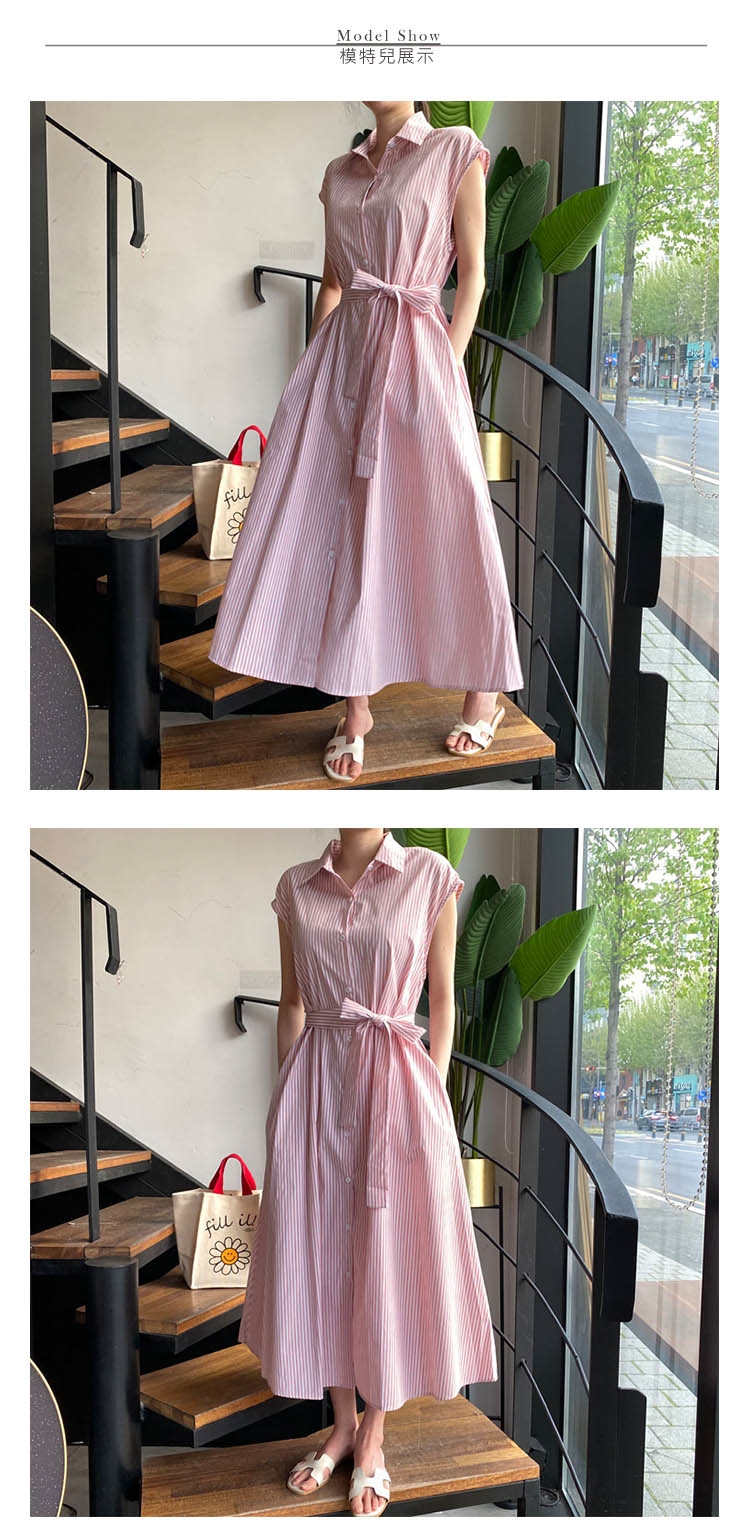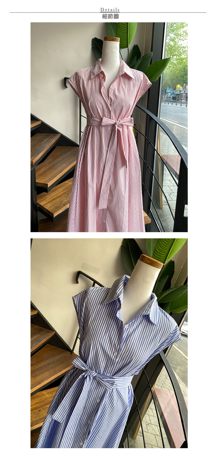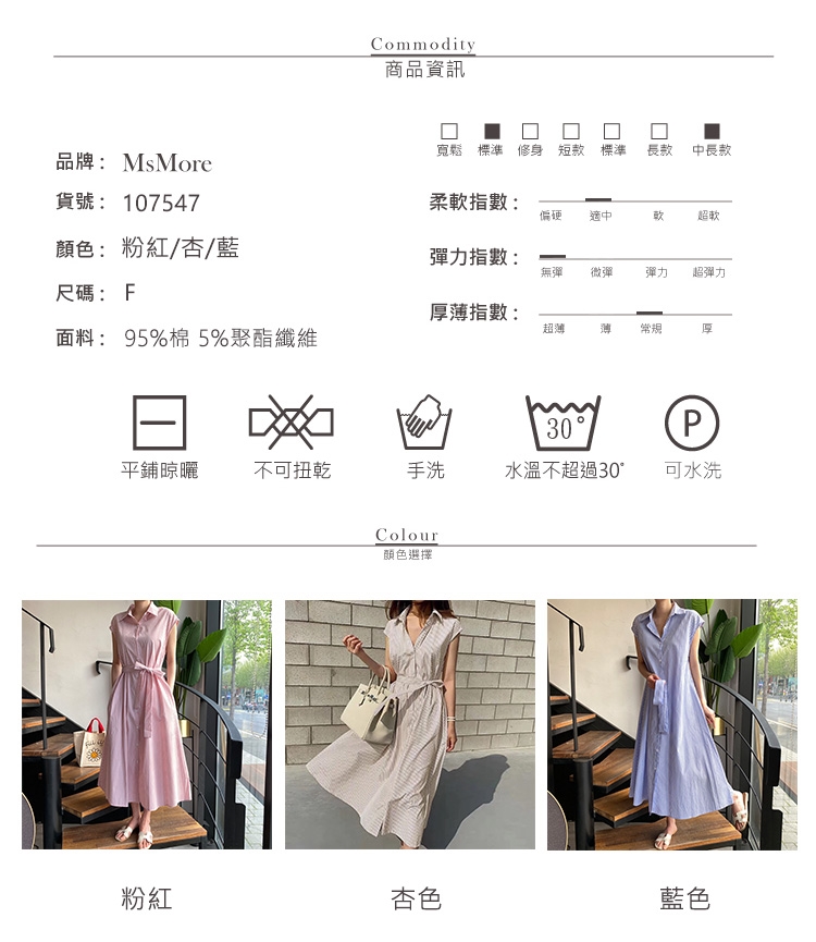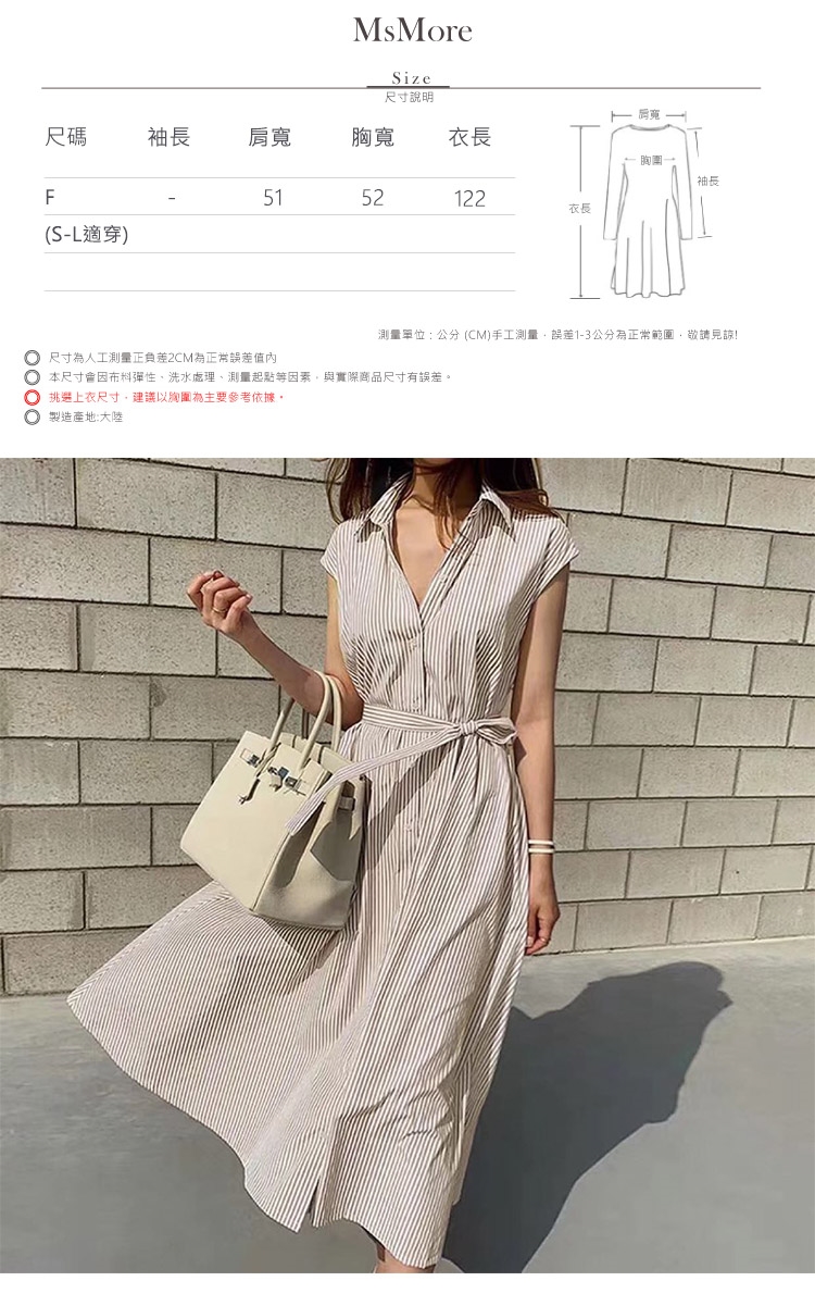 * 內含 : 韓國杏花飄氣質條紋棉麻襯衫洋裝#
