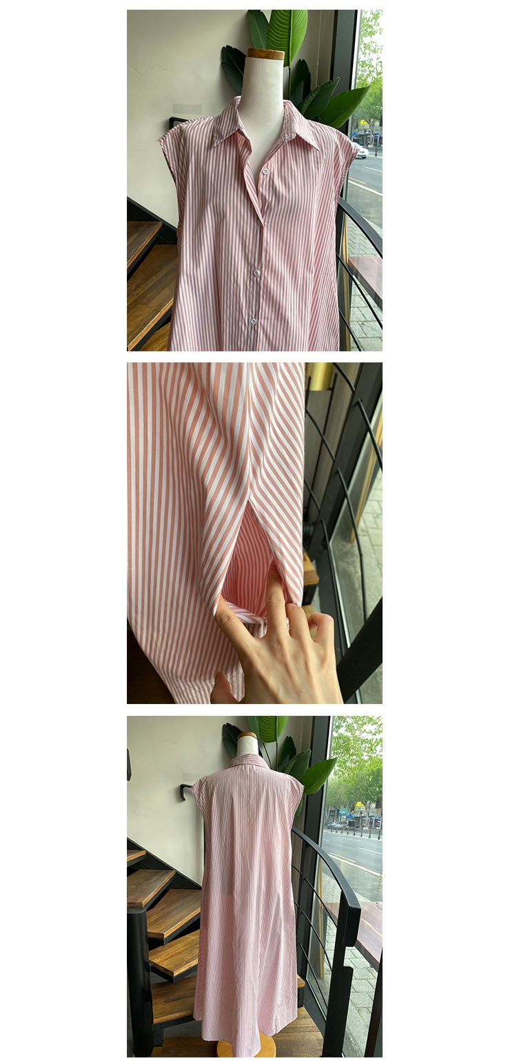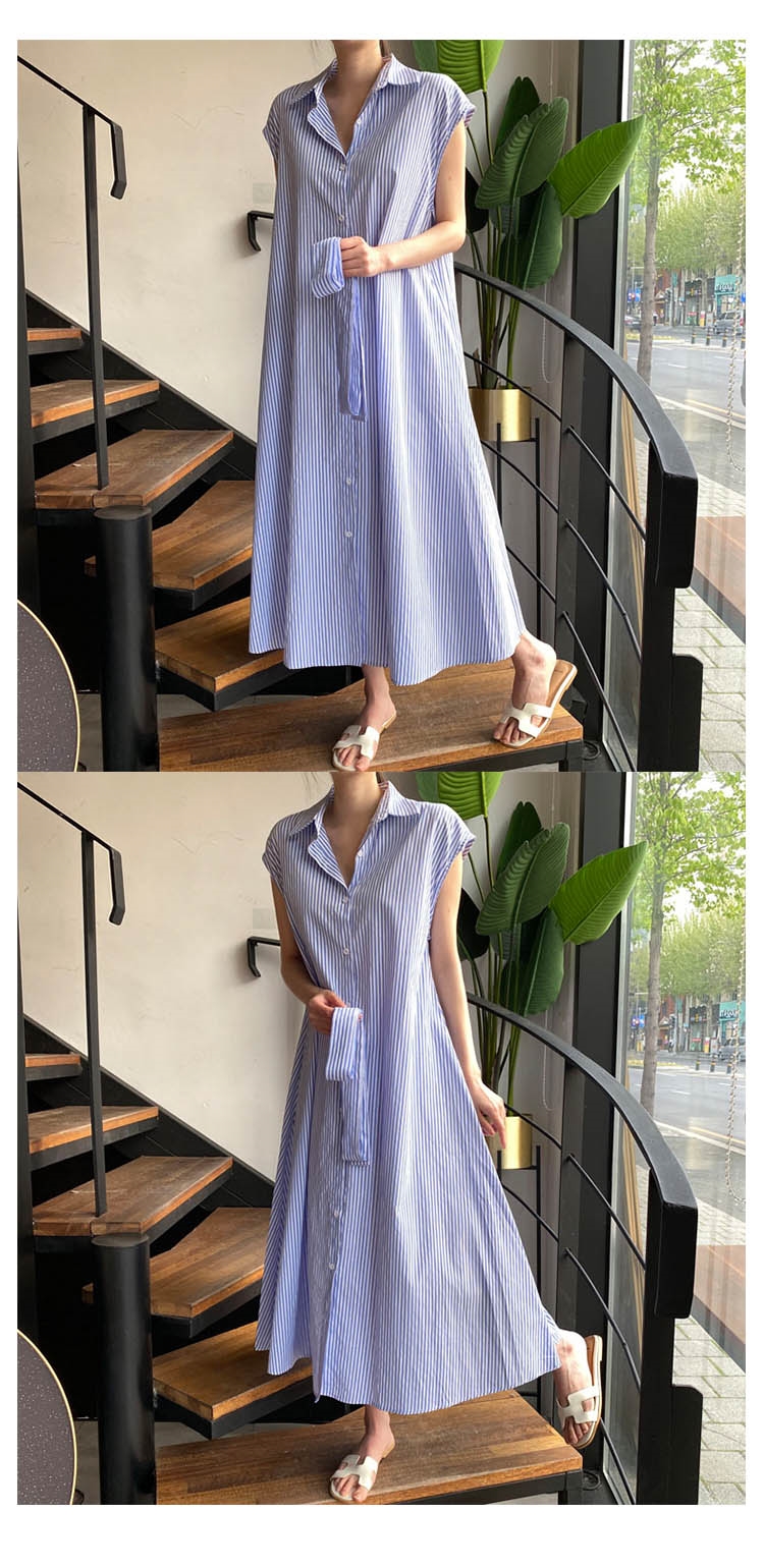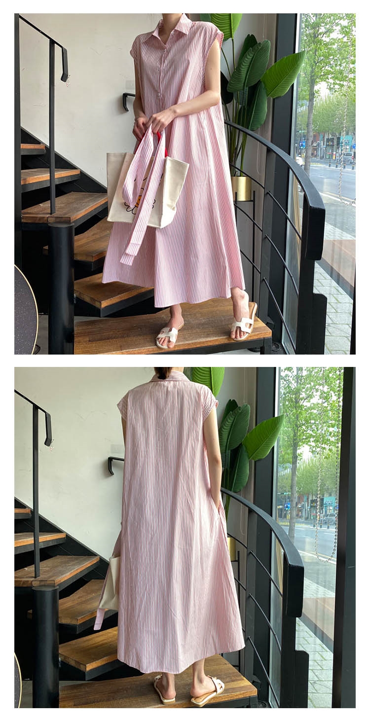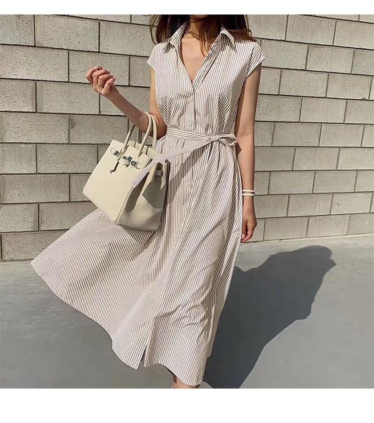 * 內含 : 韓國杏花飄氣質條紋棉麻襯衫洋裝#